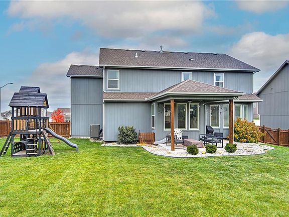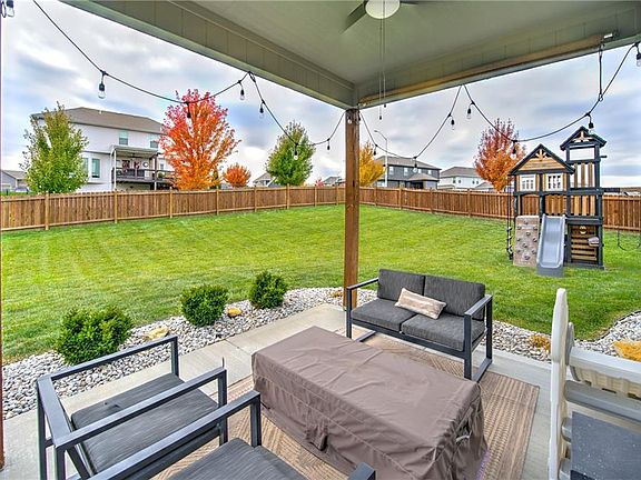 This two-story home, built in 2018, shows the pride of ownership. It looks like new without the wait! Entering you see the hardwood floors and vaulted ceilings, open floor plan and its almost 3,500'. The main level features a formal dining area into the living room, with a beautiful fireplace, large windows for the sun to shine through. And nice built-in shelving. The eat-in kitchen has beautifully painted cabinetry, an island with extra seating, and a large walk-in pantry with a nice 1/2 bath on the main level. From the kitchen, you can access the covered patio, an ideal space for entertaining and watching the kids and pets play in the fenced back yard. Situated on a 0.26-acre lot, the backyard offers nice landscaping, a privacy fence, and nice plants and bushes. Upstairs, the primary suite awaits, complete with a tray-lit ceiling and large windows. The oversized primary bathroom features beautifully tiled floors and shower, a large soaker tub, and a spacious walk-in closet. Also includes two additional bedrooms with a Jack and Jill bath, a 4th bedroom with private suite, and a nice laundry room on this level. The lower level, finished in 2020, incorporates the modern finishes and attention to detail found throughout the rest of the home. It features a tiled wet bar with extra cabinetry, a sink, and quartz counters, and an extra count top perfect for the kids to do homework or just a place to enjoy. A cozy family room and 2nd fireplace. The fifth bedroom/office, with double door entry, and the fourth full bath complete this level, with luxury vinyl plank floors throughout With access to the wonderful amenities Benson Place Fieldstone has to offer and located within the award-winning Liberty School District. This home truly has it all. Come See, Fall in Love and make this your next place to call Home.