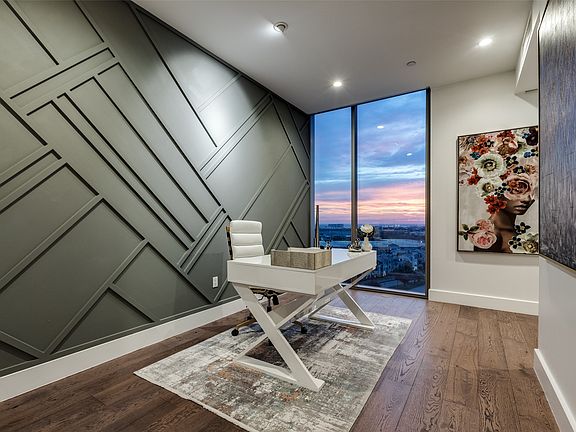 Discover elevated living on the 11th floor of Windrose Tower at Legacy West, where refined design meets lock-and-leave luxury. This stunning North-West corner residence offers 2 bedrooms, 2.5 baths, a versatile den-office, and floor-to-ceiling windows that flood the space with natural light and panoramic views. A wrap-around balcony with a sleek fireplace sets the stage for relaxing or entertaining while enjoying city views and breathtaking sunsets. Inside, warm wood floors flow seamlessly throughout. Electronic shades offer both ease and elegance. The chef’s kitchen features quartz countertops, a large island, Sub-Zero refrigerator, Wolf 5-burner gas cooktop, and a striking floor-to-ceiling glass wine cellar. The primary suite is a serene retreat with a custom-designed closet and elegant textured accent wall, while spa-inspired marble bathrooms add a timeless touch. The second bedroom includes a built-in Murphy bed and custom closet, making it a flexible space for guests or additional living needs. To simplify your busy life, The Windrose provides valet parking seven days a week, and impeccable 24-hour concierge services. The condo includes two assigned parking spaces in an enclosed and gated parking garage convenient to the lobby and elevator. Windrose Tower residents enjoy world-class amenities: resort-style saltwater pool with private cabanas, state-of-the-art fitness and wellness center, golf simulator, wine lounge, conference rooms, outdoor kitchens, beautifully landscaped terraces, and a pet spa—plus two guest suites to reserve for visitors. Incredible location close to corporate giants HQ like Toyota, Liberty Mutual and J.P. Morgan Chase and minutes from the vibrant high-end shopping, dining, and entertainment of Legacy West and the Shops of Legacy. This exceptional home combines luxury, privacy, and lifestyle at one of Plano’s most prestigious addresses.