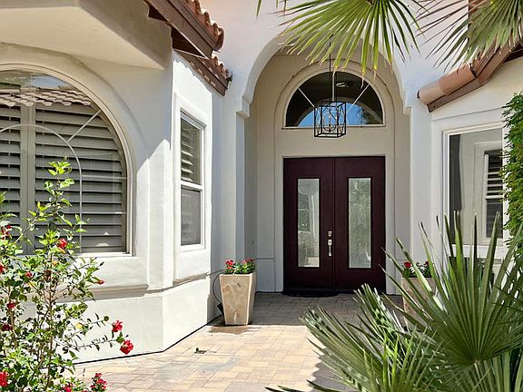 Nestled within prestigious Rancho La Quinta Country Club. Gorgeous modern renovated home with stunning views of the colorful hues of the panoramic Chocolate Mountains & the 9th. fairway of the Robert Trent Jones Jr. Championship Golf Course. Ideally situated on a private cul-de-sac & close to the Club House & all of the amenities. The large backyard entertainer's covered patio features quality stone pavers, custom pool with elevated spa, waterfall & a large built-in BBQ cooking station. This high end PALACIO II mini-estate consists of 4 bedroom, 4.5 baths. A deluxe detached guest house with a romantic fireplace & kitchenette offers guests privacy & comfort. Upon entering the charming courtyard you will be greeted by hand-laid paving stones. Enter the beautiful custom wood glass dual doors and you will be impressed with the craftsmanship & attention to detail. This home has been almost completely retrofitted from top to bottom & has been re-envisioned & modified by removing the wall that separates the kitchen, family room-living room resulting in an amazing open floor plan concept that creates spaciousness with multiple entertainment venues. Features boast updated limestone flooring & plush upgraded carpeting in bedrooms-all bedrooms are ensuite. Modern interior paint colors & modern ceiling fans enhance the ambiance, LED lighting throughout. The newly updated gourmet kitchen is a culinary delight with custom finished cabinetry, Quartz surfaces & beautifully designed contemporary backsplash & top of the line stainless steel appliances. Entertain in style from the step-down wet bar complete with the same luxurious features of the kitchen.The elegant formal dining room with its newly installed modern electric fireplace provides a warm & cozy atmosphere for entertaining. The primary bathroom suite offers Quartz counter tops. a redesigned soaking tub & updated walk-in shower with frameless shower doors. The lavish primary suite with a romantic fireplace opens directly to the pool & spa & offers stunning views of the golf course. HOA dues of $1,198 per month include social membership, use of club house, two other dining facilities, 8 pickleball courts, 9 tennis courts, bocce ball, fitness center, 24 hr. roving security, direct TV, internet, front landscaping & trash. Note: some images have been virtually staged to better showcase the true potential of rooms & spaces. This is resort living at its finest in prestigious Rancho La Quinta Country Club.