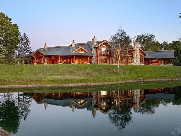 LUXURY PROPERTY AUCTION: 15-23 OCT. Accepting starting bids through 14 October. Starting bids expected between $2M-$3.5M. An extraordinary Western legacy awaits at Saguaro Ranch, a 189-acre riverfront estate where frontier spirit meets refined Ohio Valley elegance. At its heart is a 7,000+ sq ft log home, handcrafted from British Columbia timber and anchored by Wyoming stone. Over a mile of Little Miami River frontage flows past rolling pastures where mornings invite horseback rides and afternoons unfold with riverside gatherings. Features include 33 hand-carved bears, Douglas Fir floors, 5-Wyoming stone fireplaces, a copper roof, and a custom La Cornue range from France. The ranch offers 30+ stalls, an indoor arena, hay barn, paddocks, wash racks, and two offices. A ranch manager's residence, temperature-controlled five-car garage, fiber-lit pool courtyard, and expansive outdoor living spaces complete this rare legacy estate - minutes from Caesar Creek and the World Equestrian Center.