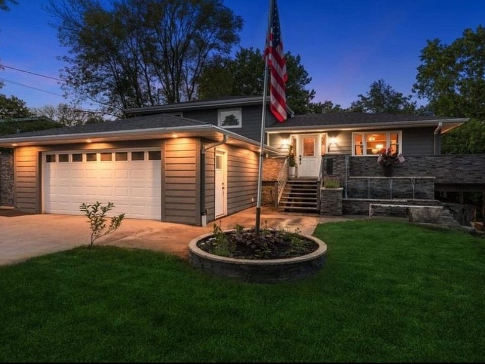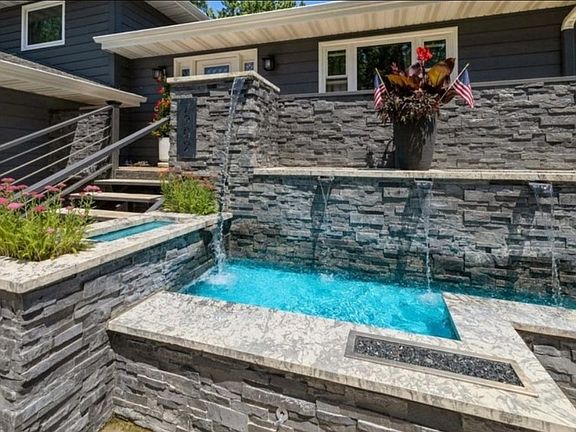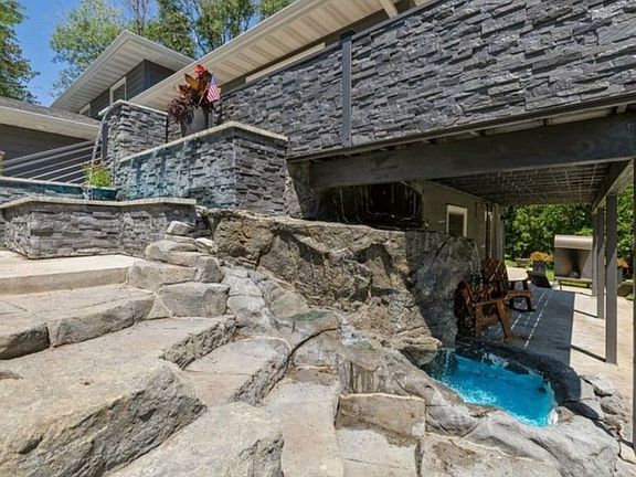 Over 2500 sq foot of an entertainers dream home on nearly one acre. This home greets you with stunning landscaping including a waterfall. The open concept main level features a custom kitchen with an 8' marble island, eat in dining including a window seat and custom built-ins. The master suite features a jetted tub, Italian tile and a spacious closet. There are two Family/Game rooms (24 x 24 and 28 x 32), with heated tile and concrete floors. Rock wall with indoor waterfall and gas fireplace. The Family rooms walk out to a two-level patio, outdoor kitchen with modern fire feature. The lower level is an in-law-suite with kitchenette, sitting room, bedroom, and a handicap accessible 3/4 bath. The in-law suite walks out to the rock waterfall and patio.