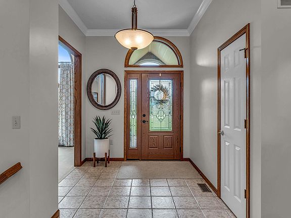 This home is a testament to the beauty and warmth of Midwest living -- situated at the edge of Sherwood Park on nearly an acre with manicured lawn, sprinkler system and inground pool! Brick/frame rancher with inviting front porch, 10’ ceilings main floor (including tray, step-up tray and vaulted), recently refinished solid hardwood flooring (oak), 9’ ceiling in basement, covered deck and partially fenced (black rod iron) back yard. Entertaining is a breeze with separate Formal Dining Room w/convenient access from Kitchen and Living Room. Culinary enthusiasts will enjoy the Kitchen with Informal Dining and Breakfast Bar for easy meal preparation with newer Kitchen Appliances and Granite Counter Tops. Primary Suite is spacious and offers walk-in closet and recently remodeled en-suite bathroom complete with oversized walk-in shower and tile flooring. Laundry is located on main floor (separate room) with pre-wash sink. Basement is an ideal retreat for teens and guests with Family Room to include a Built-In Bar with Mini Fridge and plentiful unfinished area for storage with built in shelves. Newer Roof, Hot Water Heater, Pool Heater, HVAC/AC and Newer Interior and Exterior Painting, this really is a must see. Pool table stays with the home.