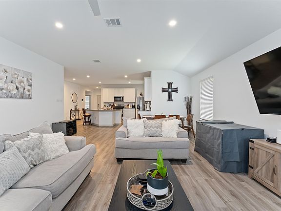 Welcome to 7902 Sleek Flock Lane — a beautifully designed 4-bedroom, 2-bath home offering modern comfort and style. Built in 2023, this 2,061 sq ft residence features an open-concept layout with spacious living areas, ideal for both entertaining and everyday living. The gourmet kitchen includes sleek countertops, stainless steel appliances, and ample cabinet space, flowing seamlessly into the dining and living rooms. The primary suite offers a private retreat with a walk-in closet and a spa-like bath featuring dual vanities and a walk-in shower. Three additional bedrooms provide flexibility for guests, a home office, or a growing household. Enjoy outdoor living with a covered patio and generous backyard space, perfect for relaxing or hosting gatherings. Located in a thriving community with easy access to major highways, shopping, and dining. Don’t miss your chance to own this move-in-ready home with the charm of new construction!