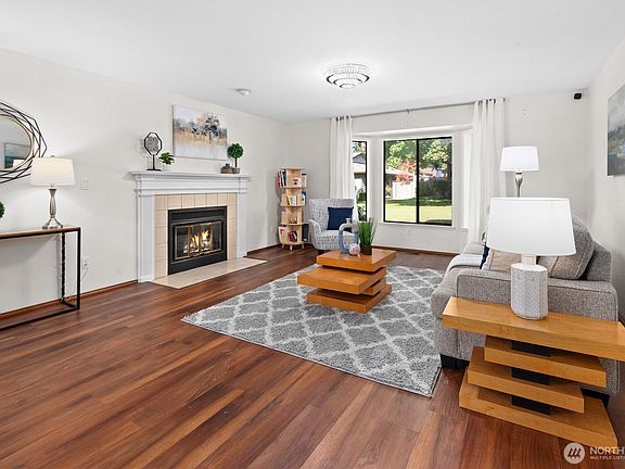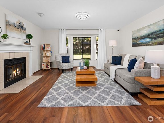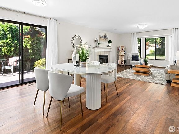 This beautifully remodeled 2-bedroom 2 bath condo in West Park Condos @ University Place is open & bright on one level! Vinyl plank hardwood floors throughout. Living Room w/ bay windows & cozy wood burning fireplace. Expansive deck off Dining is a Gardner's paradise. Kitchen has beautiful stone counters & large eating bar, painted wood cabinets & SS appliances. Primary w/ bay windows, walk-in closet & ensuite bath w/ stone counters. Large 2nd Bedroom perfect for queen bed or ideal home office is adjacent to hall bath w/ tiled tub/shower. Laundry Room w/ washer/dryer & storage. Double car garage completes this condo that feels like a single-family home. Park-like common area maintained by HOA. Heat pump provides forced air heating /cooling!