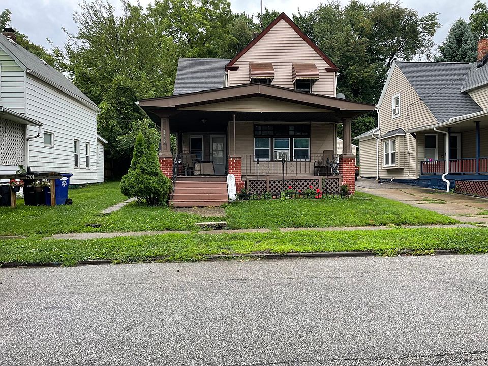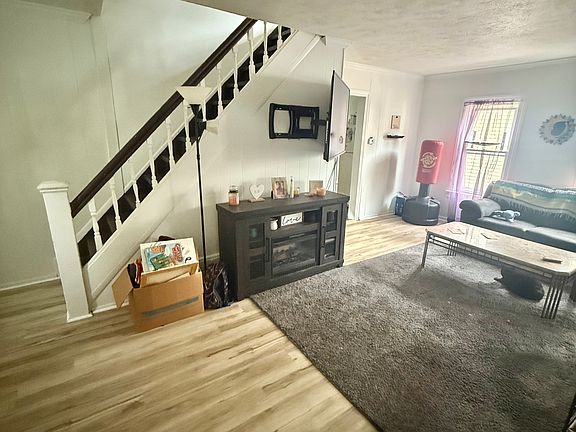 This single family home has a beautiful, large front porch! The first floor has a floor plan that includes a large entry way and living room or the ability for a first floor bedroom (shown in pictures). With a first floor bedroom there is still plenty of room for dining and entertaining. The home has recently had all brand new floors installed, brand new kitchen cabinets and countertops, and recently updated bathroom with a walk-in shower. Laundry is also on the first floor. The second floor has 2 full bedrooms with a loft between each!