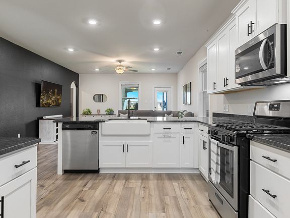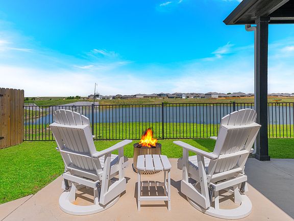 PRICED TO SELL DUE TO A RELOCATION PLUS $2,500 SELLER PAID TOWARDS CLOSING COSTS. This is a great opportunity to acquire a better-than-new home in a serene suburban neighborhood with $30K in upgrades. This waterfront charming 3-bedroom, 2-bathroom home offers the perfect blend of comfort, style, and natural beauty. Located at the end of a quiet street, the residence backs to a tranquil lake, providing stunning sunset views that create a peaceful retreat right in your backyard. Step inside through an upgraded glass-paned door and enjoy wood-like flooring throughout every room, creating a warm and cohesive flow. The modern design of the living and dining areas are filled with natural light perfect for relaxing and enjoying family time. The kitchen features modern appliances, a farmhouse sink, ample cabinetry, and a cozy breakfast nook plus a separate dining room, making it a delightful space for morning coffee or formal meals. The master features picturesque water views with an ensuite bath complete with black iron finishes and sleek granite counters. Two additional bedrooms offer flexibility for family, guests or a home office. One of the home’s standout features is the grand covered patio overlooking the lake, ideal for hosting gatherings and summer cookouts. A stylish wrought iron fence encloses the backyard, enhancing both security and the aesthetics of the natural surroundings. The neighborhood is rich with amenities designed for active and social lifestyles. Residents enjoy access to playgrounds, pickleball courts, a dog park, splash pad, fishing areas, BBQ pavilions, and scenic walking paths. These features create a vibrant community atmosphere while offering plenty of opportunities for recreation and relaxation. Don’t miss your chance to own a home with stunning views and exceptional neighborhood perks.