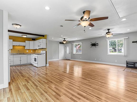 Expect to be impressed with this truly move in ready ranch. The owners have made so many improvements to this home. The main living area was opened up and fully renovated. This included added new pull down stairs to the attic where lighting and shelving was added. The bathroom was fully renovated with heated tile floors, shower with tile surround & glass door and space for stackable washer & dryer. Two of the bedrooms were opened up to create a large bedroom with 2 closets. A wall could easily be put back if you prefer three bedrooms. Both of the bedrooms have newer carpet, freshly painted ceilings & walls. The larger bedroom has brand new trim. Some of the many other improvements include brand new wider driveway, new doors, roof, furnace electric panel, deck and more!