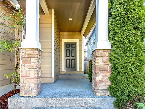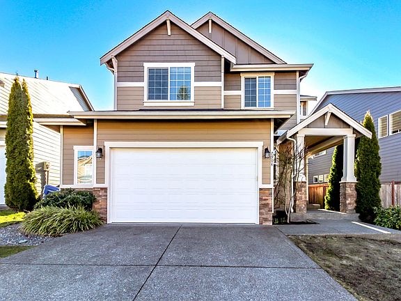Gracious contemporary 5 Bedrooms/2.5 Baths + Office home with an open floor plan. Abundant with natural light, hardwood floors, and arched doorways. Two-story entry leads to the generous living room with gas fireplace and walls of windows. Open to dining space and eat-in kitchen with stainless appliances and granite counters. Office has solid French doors for extra privacy. Don't miss the cute reading nook under the stairs! Upstairs is the primary suite with vaulted ceilings, 5 pc bath and custom walk-in closet. Also 3 bedrooms with generous closets, full bath, and utility room. Spacious covered deck with gas fireplace. Fully fenced backyard has firepit and garden beds. Close to shopping and amenities. Convenient to JBLM.