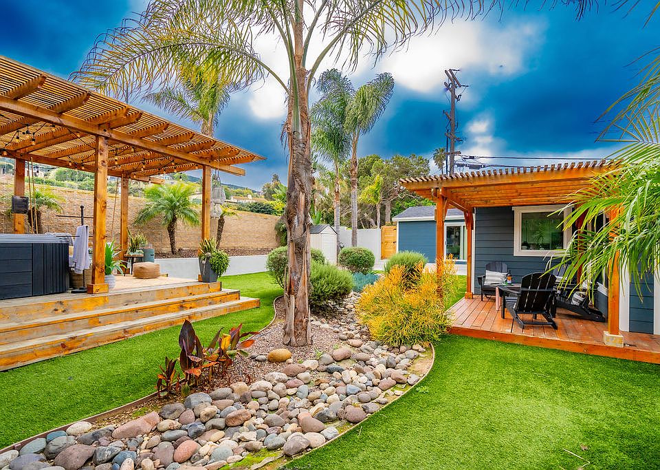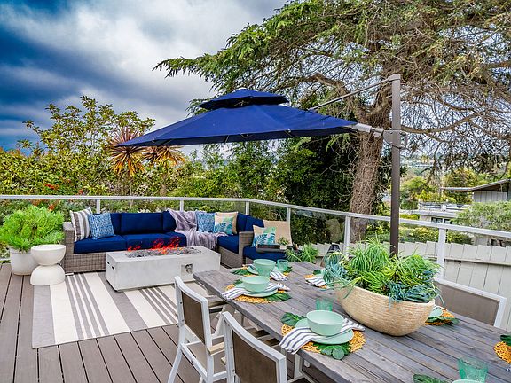 Welcome to your dream vacation getaway in beautiful La Jolla! This newly remodeled, single-level home boasts all the luxuries and conveniences you need for a perfect retreat and is pet-friendly. With 4 spacious bedrooms, each featuring its own en-suite bathroom, 4.5 baths, and a generous 2,500 square feet of living space, this home is designed to provide you with the ultimate comfort and relaxation. Just a 10 minute walk to the beach and neighborhood activities and restaurants! As you step inside, you'll immediately be struck by the open and inviting layout. The living and dining spaces seamlessly blend into the fully-equipped kitchen, offering picturesque views of the outdoors through numerous windows and glass sliders. The sunny living area is adorned with a cozy fireplace for cooler evenings, ample comfortable seating, and a flat-screen TV for your entertainment, plus there is an adjacent dining table with seating for up to 8 people. The gleaming kitchen is complete with a stone island with breakfast bar seating for 4, stainless appliances, wine refrigerator, and plenty of counter space for cooking prep. When you're ready to enjoy the California sun, simply step outside onto the large outdoor deck. The outdoor oasis is where you'll truly unwind and create lasting memories. Under the pergola, you'll find a luxurious jacuzzi surrounded by enchanting market lighting. The deck features a BBQ for your culinary delights, lounge seating under a large umbrella around a gas fire pit, and an outdoor dining table that accommodates up to 10 guests. For those seeking a quieter corner, a third seating area under a charming wood pergola awaits. The lush grassy yard provides plenty of space for outdoor activities and relaxation. Primary Suite: This luxurious suite features a comfortable king bed, a ceiling fan for added comfort, French doors that open to the outdoor deck, a dual vanity, and an extra-large shower with double shower heads. Bedroom 2: Equipped with a queen bed, ceiling fan, and an en-suite bathroom with a combo tub/shower. Bedroom 3: Offers another queen bed, a ceiling fan, an en-suite bathroom with a shower, and direct outdoor access. Bedroom 4: Perfect for the family or friends, this room includes 2 queen beds, a ceiling fan, a flat-screen TV for entertainment, an en-suite bathroom with a shower, and even a convenient kitchenette with a sink, fridge, and stove. Plus, it has easy access to the yard through sliding glass doors. This vacation abode comes with a host of additional conveniences to enhance your stay. Stay connected with Wi-Fi and cable, enjoy your favorite tunes with the Sonos sound system, and take advantage of the provided parking. We've also thought of your outdoor adventures from bikes to surfboards and beach equipment, everything you need is here. And for your everyday needs, a side-by-side washer and dryer are at your disposal. When you're ready to explore the local area, you'll be delighted to know that you're within walking distance of La Jolla Shores Beach, Kellogg Park, as well as an array of restaurants and shops. Your options for fun and relaxation are endless. Please note: 2 driveway parking spaces available on-site. Pet friendly - up to two dogs. $150 fee per pet will apply. You must be 25 years or older to rent this property. Sleeping Accommodations (10 sleep in beds, 10 max occupancy): Bedroom 1 - (1) King bed Bedroom 2 - (1) Queen bed Bedroom 3 - (1) Queen bed Bedroom 4 - (2) Queen beds STR-01217L TOT 638938 This is a vacation rental and prices are negotiable on long term rentals. Pricing and rates vary depending on the season/months and terms of stay. Contact management company directly with questions, pricing and availability.