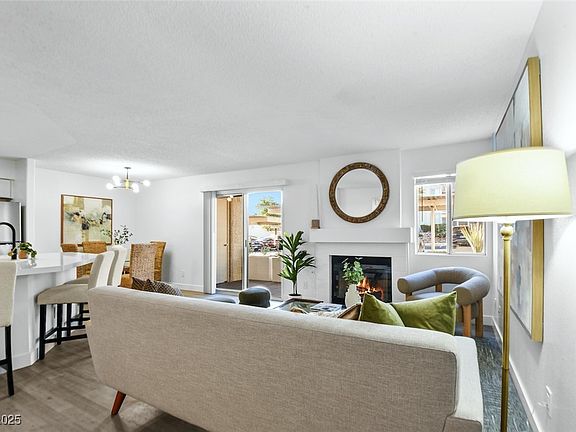 Back on The Market - Seller will Contribute for Buyer's Closing Costs up to 3% at Listed Price Offer - Welcome Home to this Stunning 2 Bedroom, 2 Bath, Condominium! Freshly Painted with a Modern Feel - Sleek & Stylish Open Floor Plan! Kitchen Boasts an Extended Quartz Countertop with Ample Seating, Stainless Steel Appliances, Lots of Cabinet Space, & Upgraded Light Fixtures. Spacious Living Room with Cozy Fireplace - Dining Area is Perfect for Relaxing Meals. Large Primary Bedroom with Ceiling Fan/Light, Walk-in Closet, & Bathroom with Double Sinks, Custom Cabinetry, Soaking tub, and Separate Shower. 2nd Bedroom includes Walk-in Closet. This Gated Community combines Beauty & Convenience with Manicured Grounds and Exclusive Access for Residents and their Guests to Large Pools and Spas, Clubhouse, & Exercise Room. Ideally Located near Shopping, Dining, Tivoli Village, Boca Park, Suncoast Casino & Resort, Downtown Summerlin, Red Rock Casino & Resort, and Other Recreation Areas.