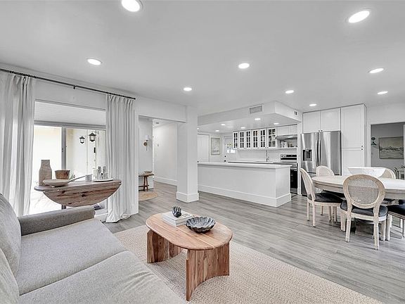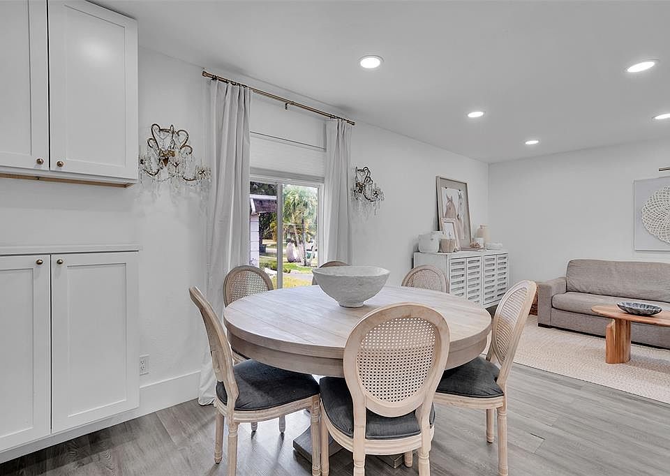 Modern charm meets family-friendly living in this beautifully updated 3BD/2BA home, featuring designer finishes and a light-filled open layout. The stunning kitchen boasts a quartz waterfall island, glass-front cabinetry, and stainless steel appliances. Enjoy upgraded bathrooms, luxury vinyl plank flooring, and thoughtful upgrades throughout. Step outside to a private, fenced backyard with mature trees, a pergola-covered patio, above-ground saltwater pool, playset, orchid trees, mango, and avocado trees. Roof 2022. Located near A-rated schools, parks, houses of worship, and the beach—this turnkey gem offers comfort, style, and convenience. Enjoy community amenities with the very low HOA of just $12/m.