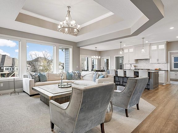 Designed w/an open & spacious layout, this home is full of premium features & thoughtful upgrades. Upon arrival you'll appreciate the impeccable craftsmanship, including Andersen windows, LP Smart Siding, & an oversized 3-car garage w/storage loft. The custom-designed kitchen features a large island, elegant wood floors, upgraded KitchenAid appliances, 54” upper cabinetry, & stylish lighting fixtures. The Great Room is an entertainer’s delight, featuring a modern fireplace framed by custom cabinetry & vaulted ceilings accented w/crown molding. You'll enjoy relaxing or entertaining on the fabulous 3-season porch. Retreat to the luxurious owner’s suite, where you’ll find a spa-like oasis w/a freestanding soaking tub, a walk-in shower, heated floors, & spacious walk-in closet complete w/a convenient washer & dryer. The fully finished lower level extends your living space, featuring a family room, 3 bedrooms, a wet bar, & more. This home truly checks all the boxes for comfort, style, & functionality!