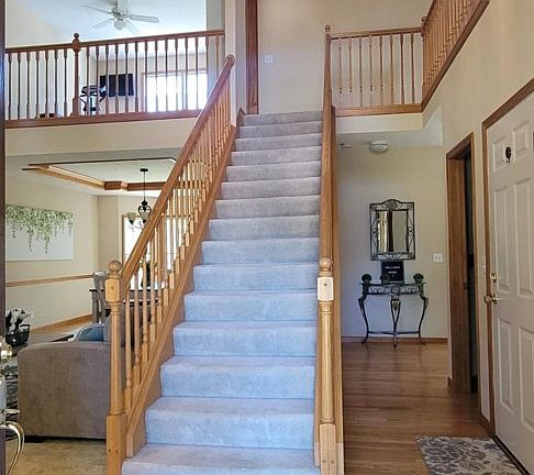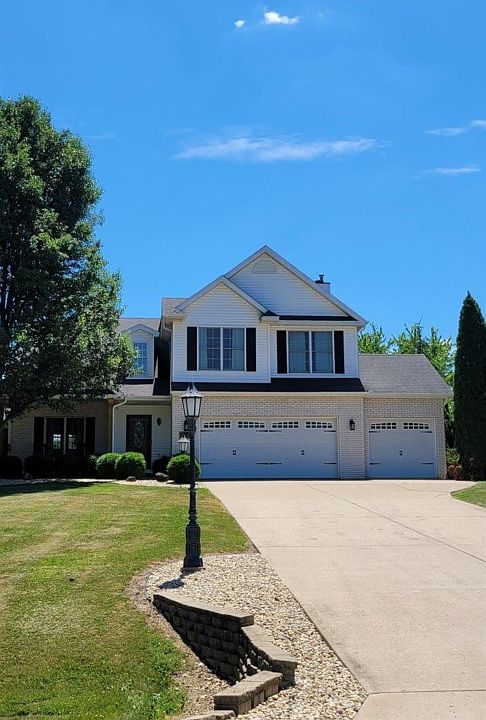 Gorgeous 3 / 4 bedroom home in Saddlebrook Estates. Large open floor plan continues outside to the covered patio, with hot tub, tv, basketball court and large yard abundant with wildlife and deer. (They were there while I was.) Nestled on just over 2 acres with additional garage for 5 total stalls. Finished basement Laundry on 2nd floor with all bedrooms. ILLINI BLUFFS SCHOOL DISTRICT Come see your new home.