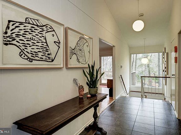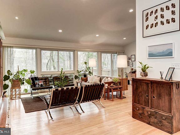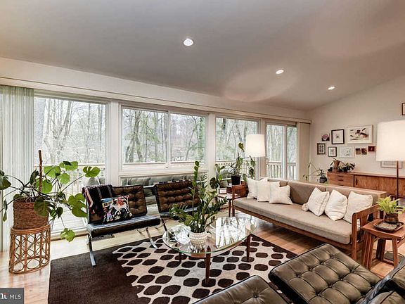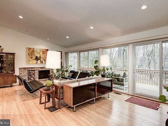 Over 3,500 sq ft mid-century modern home tucked away in Carderock Springs with soaring cathedral ceilings and sun-filled open floor plan. Abundant windows fill the home with natural light and views of the yard with mature trees. Main floor living room features a cozy wood fireplace and separate dining room. Spacious kitchen boasts center island, stainless appliances including professional grade stove and hood plus table space with built-in seating. Master suite on main level along with two bedrooms. Lower levels offers plenty of additional living space with family/rec room and guest suite. Enjoy the perched rear deck with views of the neighborhood and yard- great for entertaining or quiet dinners. Natural gas generator conveys and power lines are buried. Easy access to I-495 and GW Parkway. Nature is at your doorstep with nearby walking trails along the Potomac River/C&O Canal trails and neighborhood parks. Ample dining and shopping in neighboring Cabin John. Bonus - spectacular community club membership conveys. Club includes access to the swimming pool, tennis courts with camps for kids, community center and annual events such as a Halloween parade. Home is conveniently located to the neighborhood school with bus stop at corner or walk to school. A must see!