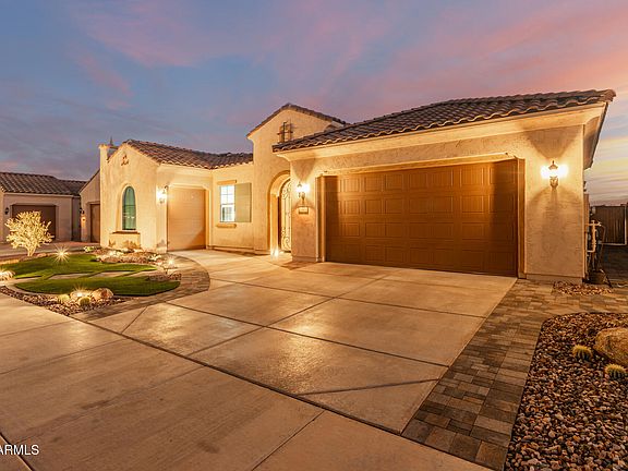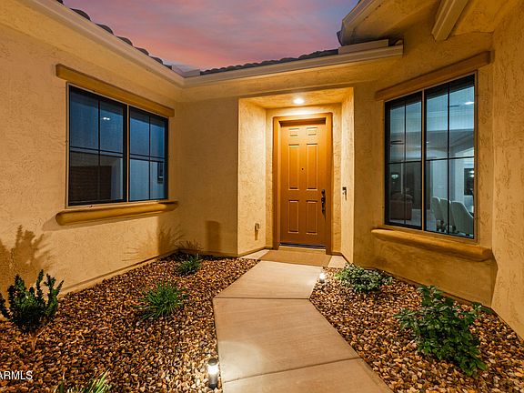 New 2bd/2ba Journey shows better than a model home. Coveted N/S location no neighbor behind. Professionally landscaped w/ Belgard pavers, bolders and artificial turf in front and back. Rear has firepit, seating wall, fountain and 12 volt lighting controlled by Alexa. Step inside and find your upgraded executive island with cabinets, quartz countertops, Kitchenaid SS Pro appliances, R/O, custom rollouts in kitchen. Tile plank flooring, motorized shades, custom media wall with 88'' electric fireplace, 85'' Samsung Neo TV and sonos soundbar. Over $6K in designer lighting, large butler and walk in pantries, boot bench and barn doors at laundry/tech center. Crown molding in great room/kitchen. Garage has 2' extension, built in cabs, soft water, & epoxy flooring. Iron entry gate & so much more.