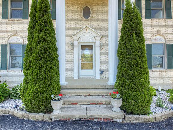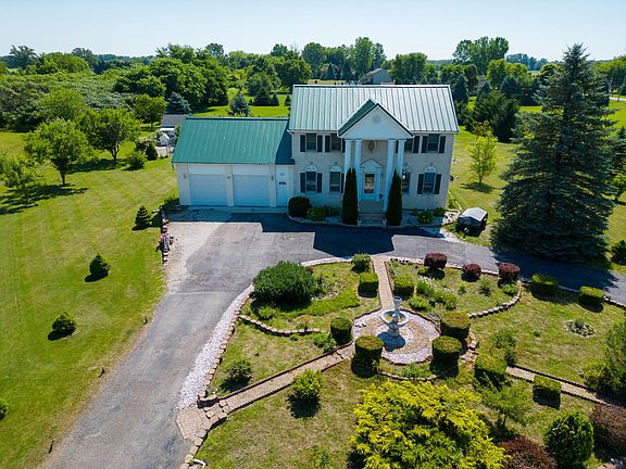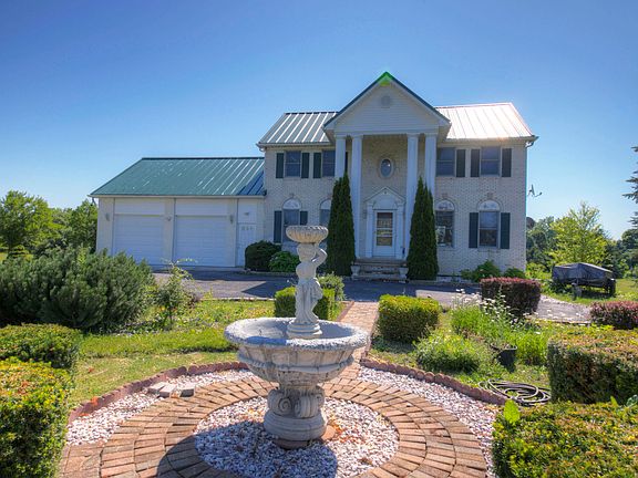 Timeless Greek Colonial charm meets country serenity on this picturesque 2.6-acre property. Nestled among evergreens, this 3-bedroom, 3.5-bath home welcomes you with a circular drive and fountain. Inside, enjoy hardwood floors, recessed lighting & French doors leading to formal dining room. The spacious kitchen is ideal for entertaining. Finished basement offers a full bath & recreation space for endless possibilities. Primary suite features jetted tub. Step outside to freshly-painted deck overlooking a private yard, fenced dog run & storage shed. Durable metal roof offers peace of mind, and the splittable lot provides room to expand. Attached 2-car garage & plenty of indoor & outdoor space, this property blends elegance, comfort & opportunity in a beautiful country setting.