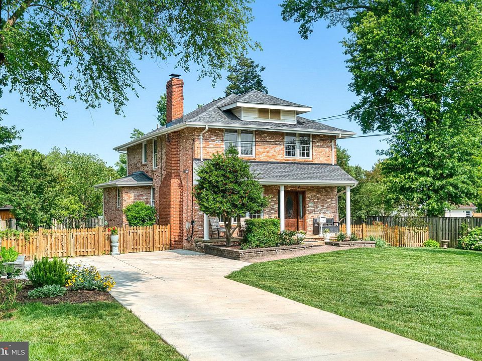 Discover historic charm and a true gardeners paradise at this beautiful 1920 home! You will love the curb appeal with brick exterior, welcoming walkways, front porch and an extra large concrete driveway. Set back away from the street with an oversized front yard and beautiful landscaping, this home has a true presence. Step inside and you are welcomed by a living area that spans the width of the home with lots of natural sunlight, oversized windows, refinished hardwood floors and a wood burning fireplace. Beyond the living room is a convenient powder room for guests and a spacious formal dining room overlooking the gardens. The generously sized kitchen features real wood cabinetry with abundant storage, upgraded granite countertops, stainless steel appliances, tile flooring and space for a breakfast table. Upstairs there are three spacious bedrooms all with refinished hardwood flooring. The primary bedroom overlooks the gardens and has a very large walk in closet and updated ensuite bathroom with walk in shower. The basement has plenty of storage with a utility room, a workshop area with sink and quartz countertops and crawlspaces. A door to the back patio is off the kitchen, leading to beautiful flower and vegetable gardens. Privacy fenced and featuring hardscaping like pathways lit by hardwired outdoor lighting, multiple patios and an oversized covered gazebo with electricity. This home will make your outdoor entertaining dreams come true and is an oasis only minutes to National Harbor, Tanger Outlets, MGM Casino, Old Town Alexandria and major commuting roads. Around the corner from the P96/97 bus stop taking you past National Harbor and Tanger Outlets. The home has many upgrades including just having been freshly painted throughout and the windows updated to include reglazing, caulking and painting. Ready for you to move in a start living your dream!