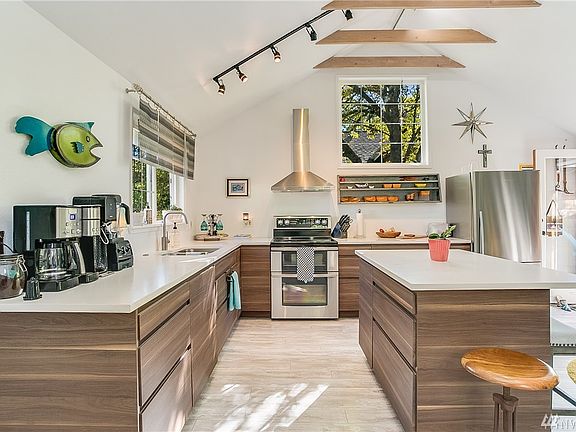 Brilliant 1930's Bungalow in coveted Little City Farms, West Seattle. Classic style, lots of charisma, Fauntleroy adjacent w/gorgeous interiors by DJR. New chef's kitchen, marbled counters, clever cabinetry, and white Oak LVP floors. Vaulted light-filled living/dining, huge Festoon-lit deck, new W/D & large attic space. Repurposed artworks and whimsical discovery abound. Western alley+2 off-street parking, possible DADU/ADU (see supps) Featured in WS Garden Tour 2015 - Rare turnkey opportunity!!