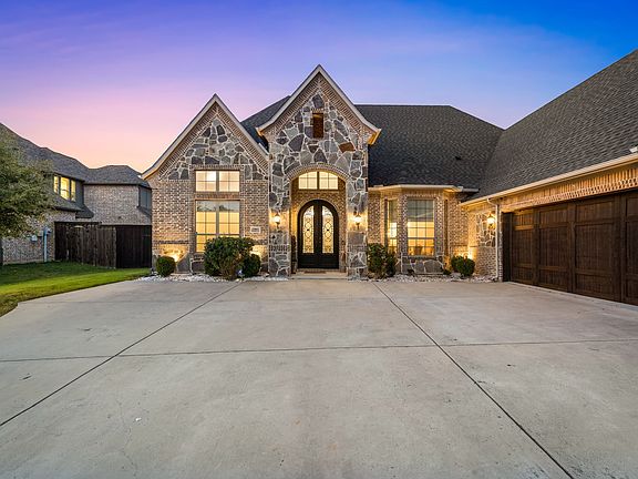 The luxurious primary suite boasts serene greenbelt views, a spa-like bathroom and a generously sized walk in closet. Additional highlights include a three car garage with a large front J swing driveway, a large corner lot adjacent to a greenbelt and a private cul-de-sac location.