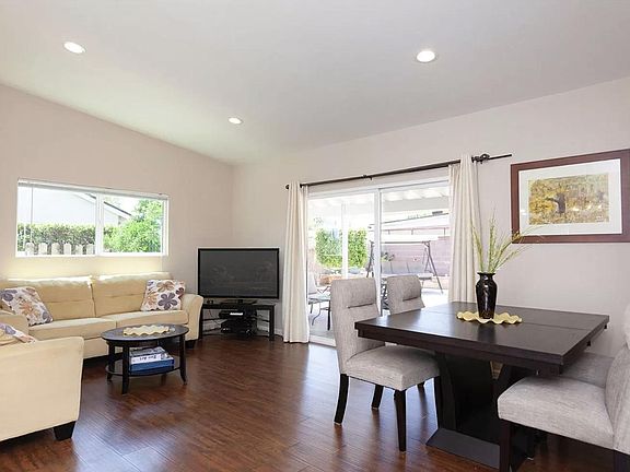 Nestled on a lovely cul-de-sac in Sun Valley, this 3 Bedroom, 2 Bath home has a spacious and open floor plan with many updates throughout. Excellent curb appeal and updated interior; the home features fresh paint, recessed lighting, Low-E windows, updated bathrooms, Central A/C, newer water heater & updated plumbing! Entering the home, you'll immediately notice the high vaulted ceilings, light and bright family & living rooms and beautiful backyard views. The oversized kitchen features stainless steel appliances, granite counter-tops, and lots of cabinet space. The bedrooms feature high ceilings, ample closet space and easy access to the remodeled bathrooms with Travertine stone. Step out to the beautiful backyard with flagstone tiled floors, cozy patio cover and custom designed fire-pit, perfect for SoCal entertaining! Side yard setup for BBQ's and a finished two-car garage with laundry hook-ups...This home is TURN-KEY!