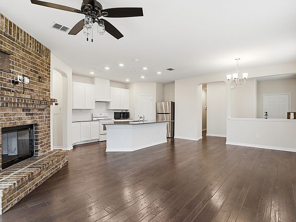 Step inside to an open, light-filled floor plan that instantly feels like home. The inviting living room features a cozy fireplaceperfect for relaxing eveningswhile the spacious kitchen, complete with an island overlooking the living and dining areas, creates the ideal setup for gatherings and entertaining.