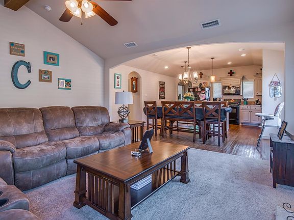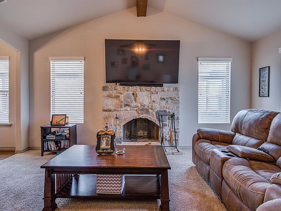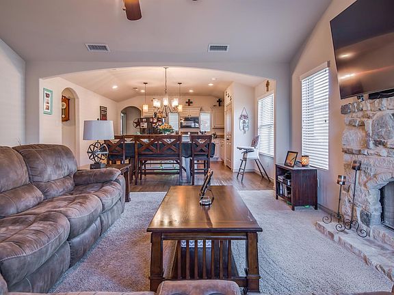 Fabulous Ventura Home in Cedar Park! 3 Bedroom 2 Bath home features: Kitchen Island W/custom cabinets, black appliance package (fridge can stay with acceptable offer), spacious laundry, vinyl plank flooring in dining room & kitchen, stone fireplace, and sprinkler system.