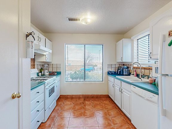 This 3-bed 2-bath townhome in Ladera West is light, bright & move-in ready with vaulted ceilings, oversized windows & good outdoor space. Landscaped lot with attached 2-car garage. Large den with central fireplace, dining area & kitchen large sink & built-in cabinets. Good sized bedrooms with ample closet space. Located near neighborhood parks, steps from Ladera Golf Course, situated along the edge of Petroglyph National Monument with dramatic views looking up to JA Volcano--the outdoor activities are ENDLESS in this area known for its wide open spaces & hiking trails!
