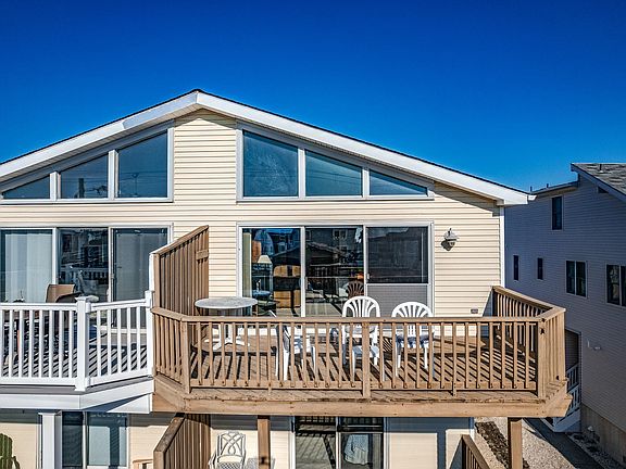 Superb south-end location for this townhome. Just 1.5 blocks to the beach and 2 blocks to the bay, this 4 bedroom, 2 bath property has something for everyone. The 'upside-down' layout gives a peak of the ocean from the top level, whether you are standing in the living room, eat-in-kitchen, or standing on the large front deck. The large and unique triangle windows and sliding glass doors in the living-room allow lots of natural light and offer spectacular sunrise views and the vaulted ceilings on the top floor makes the great-room feel that much larger. The master bathroom features an en-suite bath and one of the guest rooms is equipped with a large, private deck. The ground-level 'foyer' area is large enough to convert into office or extra sleeping space and there is a chair-lift servicing all 3 levels of the building. The attached garage offers additional storage and parking and the enclosed, outdoor shower provides additional bath space during those warm, summer months. With driveway parking for 2 cars and a spacious yard for entertaining, this home is a must-see.