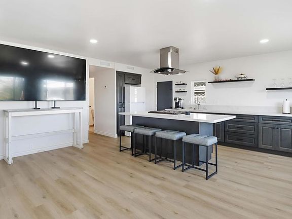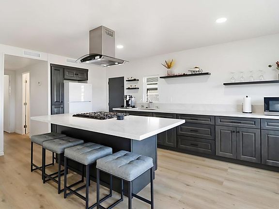 Welcome to your beautiful move-in ready home!! A stunning, fully updated home located on a desirable corner lot with only one neighbor on one side. Step inside and fall in love with the bright, modern design and thoughtful upgrades throughout. This home features new vinyl flooring, central air and heat with a brand-new furnace and vents, and all-new windows that fill the space with natural light. The kitchen has been completely renovated with real wood cabinetry, quartz countertops, a brand-new stove and hood, and modern lighting and finishes that create a warm, inviting atmosphere. The living room and kitchen feature new drywall, giving the home a fresh and solid feel. The fully remodeled bathroom includes tile flooring, a tiled shower with a new tub, updated drywall, and modern fixtures throughout. Additional updates include a freshly recoated roof, new interior and exterior paint, and a newly rebuilt redwood front porch. Perfect for relaxing outdoors. The property also offers a concrete carport with parking for two vehicles and two convenient storage sheds. Don’t miss this move-in-ready gem offering modern comfort and quality craftsmanship in a peaceful Santee community!