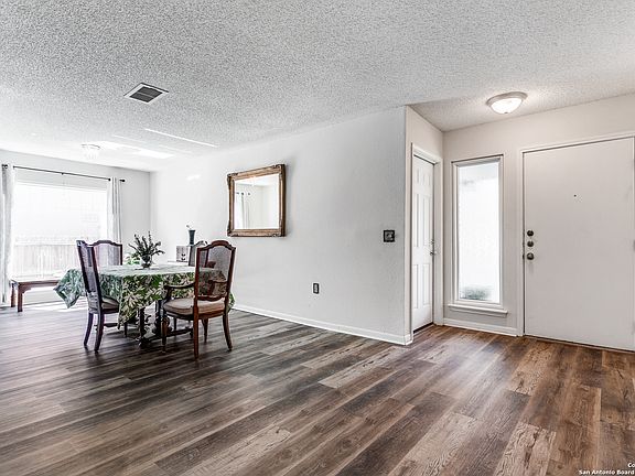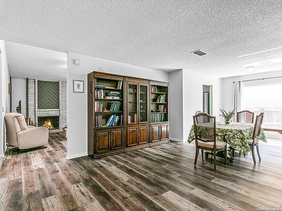Welcome to 7908 Wells Fargo, a beautifully renovated one-story home tucked into the well-established Cimarron neighborhood of Converse! Offering approx. 1,637 square feet, this spacious 4-bedroom, 2-bathroom residence is perfect for families or anyone seeking a thoughtful layout with two living areas and two dining spaces-great for both everyday living and entertaining. The cozy living room features a hearth for decorating and a skylight that fills the space with natural light, making it warm and inviting. Step outside to a large covered patio and a fully fenced backyard shaded by mature trees-ideal for BBQs, kids, pets, or simply enjoying a private moment outdoors. Inside, enjoy stunning updates like wood-look vinyl flooring, fresh interior and exterior paint, and a kitchen outfitted with new stainless steel appliances and gas cooking-a dream for any home chef! Both bathrooms are tastefully decorated, showcasing updated fixtures and stylish finishes. The primary bedroom provides a beautiful bench window and a walk-in closet with a shelving system. Additional upgrades include a newer roof (2019), new windows, newer HVAC system (2020), and new paid-off solar panels-offering long-term energy savings and eco-friendly living. A water softener is also included. The fridge, washer, and dryer are negotiable with a strong offer, giving added value. Perfectly located just minutes from Randolph AFB, Fort Sam Houston, major highways, and a variety of shopping and dining options, this move-in ready home is the perfect blend of comfort, convenience, and style in the Judson ISD. Don't miss your chance to own this gem in a quiet, established community-schedule your tour today!