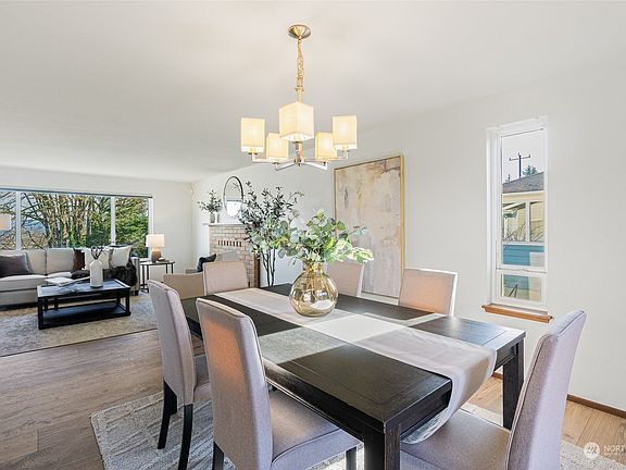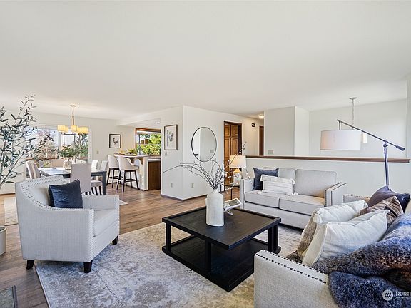 Tucked at the end of a peaceful court, this home offers breathtaking views of both the Cascades & Olympics. Surrounded by lush gardens, a tranquil pond, and mature trees, the property feels like a private oasis. Multiple decks and a covered patio are perfect for outdoor entertaining or relaxing year-round. The park-like yard includes raised garden beds, a grassy area for pets, and an adorable storage shed, ideal for tools, a playhouse, or a mancave. Inside, light-filled rooms and a spacious living area with a brick fireplace create a welcoming atmosphere. A bonus studio downstairs with a full kitchen and living area offers rental or guest suite potential. Convenient location near DT Seattle, SLU, Westwood Village, Airport & Alaska Junction