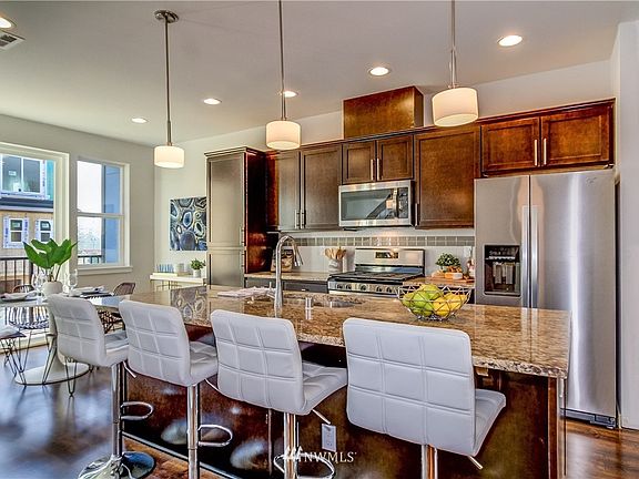 New Luxury townhomes. Open floor plans & large windows for plenty of natural light. Master suite features vaulted ceiling w/ fan, private bath, large WIC. Kitchen boasts granite counters, stainless appliances.Hardwood laminate floors in kitchen, dining & powder, plus great room on interior homes. Slider opens to covered deck for enjoyment. Gas fireplace in great room. En suite on upper floor. Close to Everything! 2 car tandem garage. GPS-7907 230th St SW, Edmonds