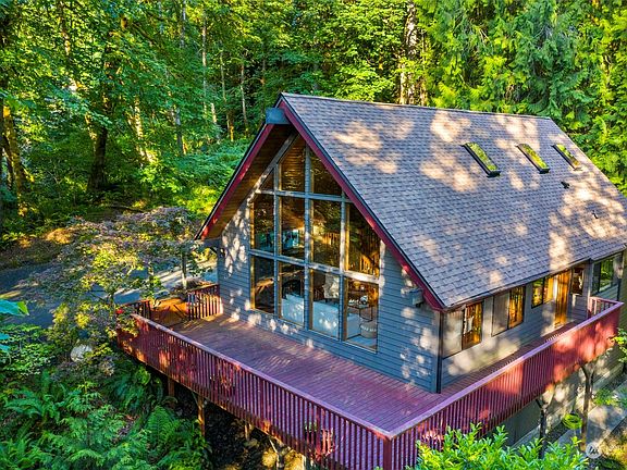 Located on 2.8 forested acres in close in Oyster Bay, this custom cedar lodge style home can be your get away from it all! Stunning forest views from every room. The main level great room features a kitchen w/ high end appliances & a wall of windows that fill the living space w/light & color. You'll love the wrap-around deck where you'll enjoy the sights & sounds of the forest. Hand-hewn Amish hickory floors, Douglas fir doors/trim & tongue n groove vaulted ceiling. Large loft area w/ full bath, great for a primary suite or family rm. Downstairs is a big family rm/bdrm/office space. Garage w/ shop area, plus detached carport w/ storage. Trails to allow you to meander through the woods & a seasonal creek. New roof & new carpet too! Come See!