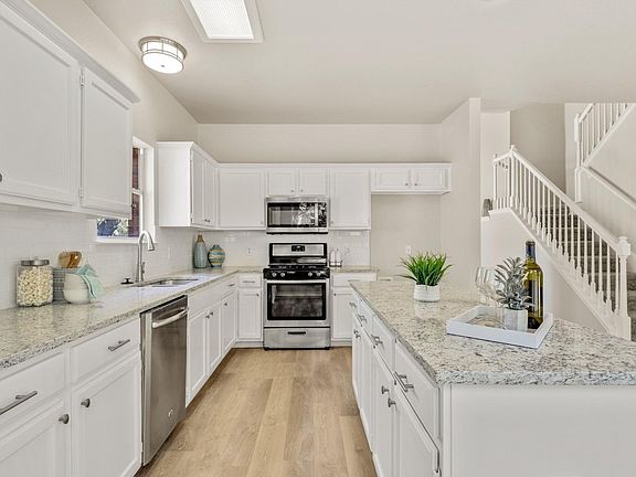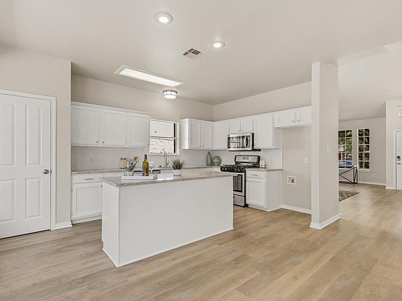 Remarkable two story home with an expansive backyard! Upon entering this home, you are greeted by an entrance foyer that can double as a dining area. The awe-inspiring kitchen is open to the living area and has sleek granite counters, a central kitchen island, tons of cabinets for storage, lovely tile backsplash and SS appliances for the inspired home chef. The welcoming living room overlooks the backyard with exclusive access and is the ideal space for gatherings or to have a relaxing night at home with the cozy fireplace turned on during a cold winter's night. The stairs lead up to the sizeable 3 secondary bedrooms that can also be utilized as offices spaces, and the primary suite. The spacious primary suite is accessed by elegant French doors and has an en-suite bathroom with a dual vanity, walk-in closet, a frosted stand-in shower, and a soaking tub to relax in after a long night. The expansive backyard is an entertainer's dream with a patio that's great for hosting a night of BBQ with friends and vast amounts of greenspace for gardening and pets to roam. Less than 15 minutes away from the Domain. Recent updates include new flooring, kitchen backsplash, ceiling fans, and so much more! Don't miss out on this gem of a home!