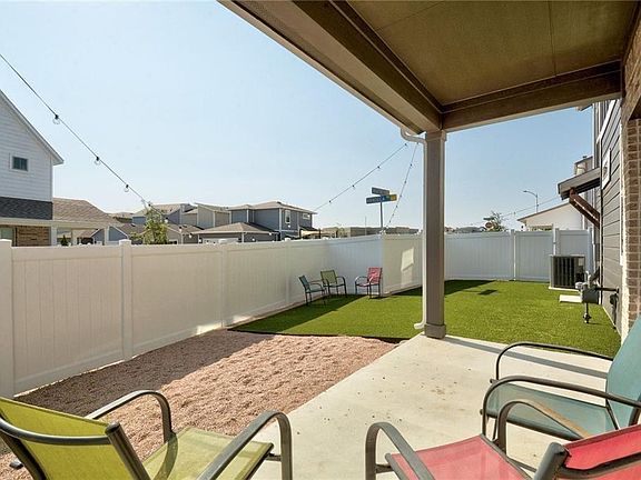 A gem in the highly desired Easton Park neighborhood! This corner lot home has a huge fenced yard with xeriscaping and artificial grass which is unique for this neighborhood. The front of the home faces a spacious park-like common greenspace. The primary suite is downstairs, with the living, kitchen, dining and a secondary bedroom upstairs. A very open and bright plan. It's truly like living in your own treehouse! There is so much privacy and even views from the upstairs balcony. Easton Park features terrific amenities such as a community pool, fitness center, dog park, and fun activities such as concerts and food trucks. The refrigerator, washer and dryer are included!