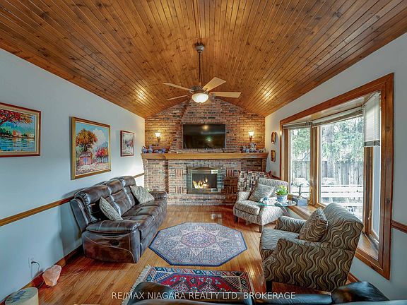 Welcome to this stunning, character-filled home located just steps from the scenic Chippawa Parkway and the Niagara River. This spacious residence is brimming with charm and offers the perfect blend of classic features and modern convenience. As you enter the main floor, you are greeted by beautiful hardwood floors throughout, leading you to a large living room with breathtaking views of the river. The formal dining room is elegant with French doors, perfect for family gatherings or entertaining guests. The open-concept eat-in kitchen overlooks a cozy sunken family room, complete with vaulted ceilings and a charming brick gas fireplace, creating a welcoming atmosphere. The main floor also features a 5th bedroom, currently being used as an office, and a convenient 2-piece bathroom. Upstairs, you'll find three generously sized bedrooms, a 4-piece bath, and a master suite that is truly a retreat. The master suite boasts a private parlour with a day bed, offering picturesque views of the Parkway and Niagara River. It also includes a large walk-in closet and a luxurious 4-piece bath, complete with a laundry chute for added convenience. The fully finished basement is a true bonus, with a separate entrance that provides excellent potential for an in-law suite. You'll find a cozy rec room, a billiards room with a bar, and two additional large storage rooms, along with a cold cellar. Outside, the property sits on a beautifully landscaped corner lot, featuring mature trees and a park-like backyard that provides a peaceful sanctuary. Entertain guests on the large deck or unwind in the hot tub, all while enjoying the serene surroundings. This remarkable home is located on one of Chippawas most sought-after streets, with a park just down the street and spectacular sunset views over the iconic Niagara Parkway. Close to schools, bus stops, shopping, restaurants and all other amenities, dont miss out on this true gem a unique opportunity to own a piece of paradise!