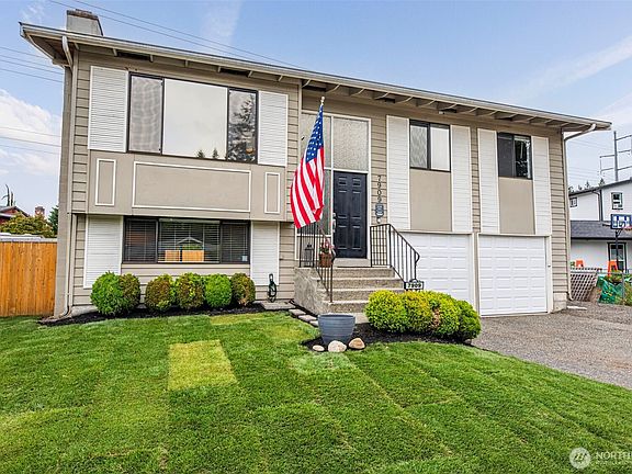 Tastefully updated in VALLEY VIEW! This 3 bed, 2 bath home sits on a shy ¼ acre lot w/BEAUTIFUL landscaping + NEW Cedar fenced yard! Inside features NEW LVP flooring, FRESH PAINT, white cabinetry w/new black hardware, STAINLESS appliances + 2 cozy BRICK wood-burning FIREPLACES. Lower level includes SPACIOUS family room, bath, utility room + additional finished office space off garage. Detached 10x16 SHED w/POWER, INTERNET, heat + A/C that is perfect for a studio or work from home space! Enjoy the covered outdoor space w/HOT TUB + DECK & firepit. Great curb appeal w/NEW garage doors, newer roof + cul-de-sac. Tucked in a quiet well-kept neighborhood that is peaceful yet close to everything! EASY access to I-5, Boeing + shopping.[WELCOME HOME]