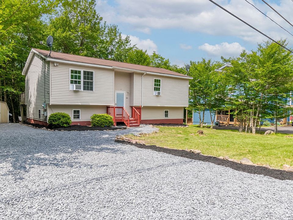 New to the Market! Introducing this Single Family home fully furnished 5-bedroom, 2-bath, offering both space and tranquility. Recently updated with a modern kitchen, stylish baths, and newer appliances, this home also features a family room, office, den/bonus room, and laundry/utility area for flexible living. Step outside to a cozy deck and backyard with a fire pit, where complete privacy awaits with no neighbors behind you. With ample parking, a storage shed, and access to an amenity-filled community with school busing, this home combines convenience with a peaceful setting just minutes from parks, shopping, commuter routes, and all the best of the Poconos. Schedule your tour today!