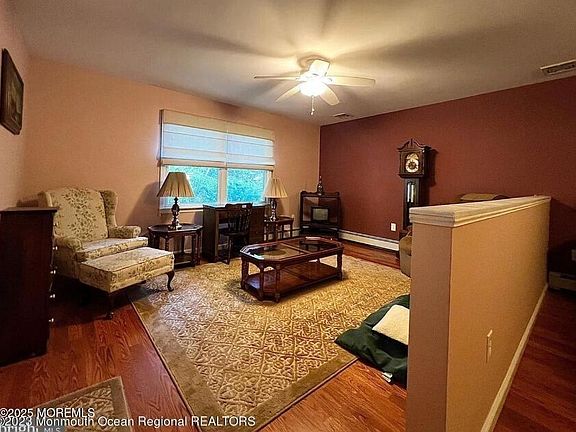 This charming 3-bedroom, 2-bath ranch with a full basement is nestled on a premium 1+ acre fenced lot in Jackson Township, NJ. As you step inside, a welcoming sun porch greets you, perfect for enjoying morning coffee or providing an ideal work-from-home setting. The interior features luxury vinyl plank flooring throughout most of the home, adding a touch of modern elegance.