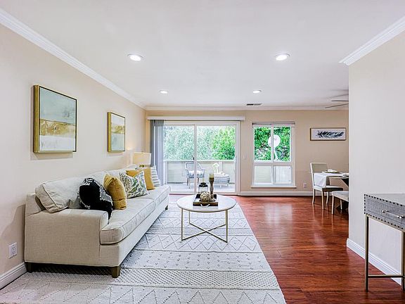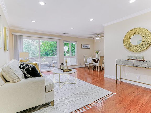 Central AC was installed on June 2023. This is a fantastic opportunity for first time buyers to own a beautifully updated upstairs unit in a park-like complex. The spacious living room boasts stunning wood floors and a glass slider that opens to the balcony, providing plenty of natural light. The kitchen has been updated with a new venting hood and a newer dishwasher, and the indoor washer/dryer adds an extra layer of convenience. The large bedrooms feature closets with dual-pane windows, ensuring a peaceful night's sleep. Additionally, this unit has its own outdoor deck facing the community pool, perfect for relaxing after a long day. Dedicated covered parking with additional storage is also included. A newer roof provides peace of mind for years to come. Located in an excellent area with an easy commute to Google, Apple, Linkedin, and other top companies. Low HOA of $395 covers hot/cold water and garbage, making this an outstanding value.