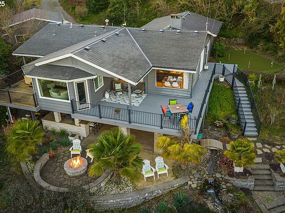 Breathtaking Views in Dundee's Wine Country! This stunning home offers million-dollar views & a seamless blend of indoor & outdoor living. Located in a desirable neighborhood atop the Dundee Hills, this property spans just over 1/2 an acre & features over 3,000 sq ft; main level living with 3 bedrooms & 3 full baths. You'll enjoy panoramic views from nearly every window. The open kitchen features granite countertops, crisp white cabinetry & SS appliances. The spacious great room is bathed in natural light, thanks to large windows that frame the sweeping views. The main-level primary suite includes a walk-in shower & direct access to one of the decks featuring a hot tub. The lower level is an entertainer's paradise, complete with a large family room, bedroom & full bath. The expansive outdoor retreat is perfect for gatherings, with stunning sunset views over the valley, Mt. Hood and Mt. Jefferson in the distance. Enjoy viewing the snow capped mountains in the winter; hot air balloons & fireworks from St Paul in the summer. The tranquil sound of the water feature enhances the peaceful ambiance, while terraced gardens & lawns include a hobby vineyard, putting green & horseshoe pit. The outdoor kitchen is equipped with a built-in sink, fridge, Traeger smoker & natural gas BBQ, making it ideal for cooking & entertaining. In addition to the attached garage, there's a detached 24x24 garage/shop & RV parking. Located in the heart of the Willamette Valley, this home offers easy access to world-class wineries, parks, a new elementary school & local dining options. Don’t miss your chance to own this beauty in Dundee’s wine country. Schedule your tour today!