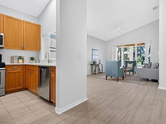 One or more photo(s) has been virtually staged. Completely Remodeled Home in the Guard-Gated Summit Greens Community. Compact layout designed for convenience and low maintenance. Welcome to 791 Wolf Creek Street, a stunning, fully remodeled residence located in Summit Greens, one of Clermont’s most sought-after 55+ golf-course communities. This home has been extensively updated, combining modern design with quality craftsmanship and low-maintenance living. Step inside to an open-concept layout featuring Luxury Vinyl flooring, custom lighting, and a bright, airy living space that flows seamlessly into the dining and kitchen areas. The modern kitchen includes custom cabinetry, quartz countertops, stainless-steel appliances, and ample storage, creating both style and function. Recent Upgrades and Improvements • New roof • New Water Heater • HVAC system professionally serviced and upgraded, including a full vent cleaning, rewiring, and new blower assembly • Fresh interior paint, new fixtures, and designer finishes throughout Enjoy peaceful mornings and evenings in the private screened lanai, surrounded by mature landscaping and open green views. Living in Summit Greens means enjoying resort-style amenities: an 18-hole championship golf course, heated indoor and outdoor pools, tennis and pickleball courts, fitness center, arts and crafts studios, billiards, and a spacious clubhouse that hosts year-round social activities. Conveniently situated near major highways, shopping, dining, and Clermont’s scenic lakes, this home offers a beautifully updated living experience in a secure, active, and well-maintained community.