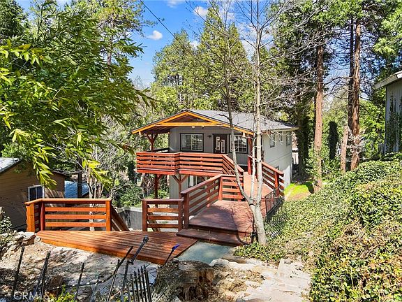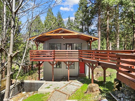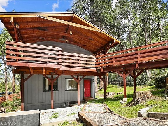 Seller is motivated but not desperate. Don't miss this this beautiful turn key home with one of the best commuter locations on the mountain. This home is perfect for a 2nd Home/Getaway retreat, maybe a short or long term rental, commuter home or a hybrid of all! It features a remodeled kitchen, cathedral ceilings with Custom Skylights, with 2 nice size bedrooms upstairs and a full bathroom and 2 oversized bedrooms down stairs with a newly remodeled full bathroom. Brand new Hvac and Central A/C, big backyard, 2 separate parking places and a storage shed for your toys. This layout can easily be divided into two separate living quarters making the possibilities endless. One of the best values in the Crestline Community, close to shopping, food and the 138 Hwy. Creative financing available! Don't wait! Check out the 3D tour and video walkthrough here!