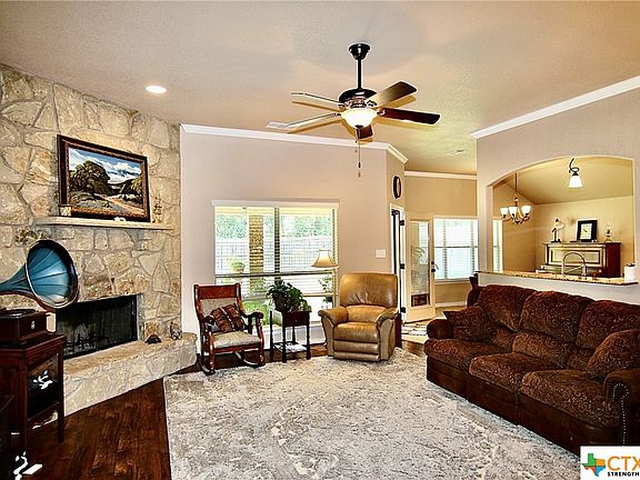 GREAT PLAN WITH 4 BEDROOM/2.5 BATHS IN BELTON ISD. A true gem, this property boasts an array of delightful features that will surely captivate any discerning homeowner like elevated ceilings and crown molding that graces the living spaces. The combination of tile and wood flooring creates a warm and inviting ambiance throughout the home, complemented further by a cozy wood-burning fireplace. Large kitchen is a chef's dream with a spacious island, an abundance of cabinets, granite countertops, stainless-steel appliances, and a charming farm sink. The master suite is a split arrangement and has double sinks, soaking tub and separate shower, and two closets. The home's exterior features a low-maintenance combination of brick, stone, and siding. Step out to the deep covered back patio, a delightful space to unwind and enjoy the serenity of the fully irrigated landscaped yard. Make your appointment today and Let US lead you home.