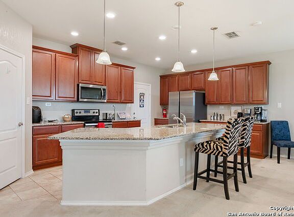 Welcome to 7910 Emmeline Dr in Boerne, TX! This spacious rental home offers 4 bedrooms, 2.5 bathrooms, and 2,883 sqft of comfortable living space. Featuring an open floor plan, multiple living areas, and a great kitchen, this home is perfect for everyday living and entertaining. The kitchen boasts granite countertops, rich wood cabinetry, stainless steel appliances, and a large center island with bar seating, seamlessly connecting to the dining and living areas. Tall windows with plantation shutters flood the space with natural light, and the cozy fireplace in the family room adds warmth and charm. Located in a desirable neighborhood with easy access to schools, shopping, and major highways, this rental offers both convenience and ease of living. Northside ISD, Don't miss this beautiful opportunity!