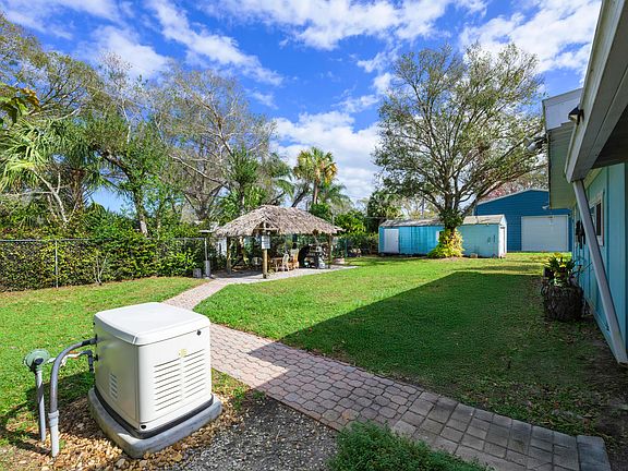 4 bed 2 bath home on a double lot with a brand new 4 car detached metal garage with loft storage. Features include 2 driveways and plenty of room for a boat or RV. Features include a tiki hut patio, 2 year old roof, Generac whole home generator with service plan, a whole home service warranty with 5 years remaining, Impact windows 2024, newer AC and hot water tank. This home is centrally located to shopping, dining, beach and easy I-95 access.