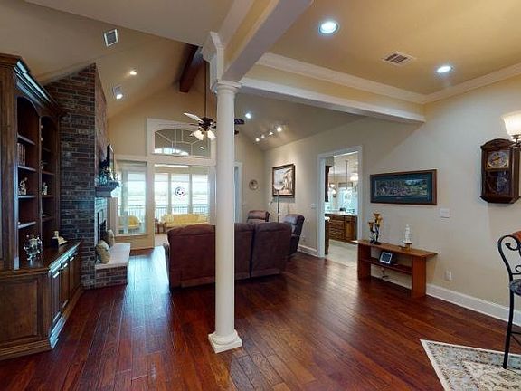 Immaculately maintained home in Waters Edge Ranch, on a 1.150 acre lot. All 3 guest rooms are nice sized with spacious closets, one having a private en-suite. The over sized master has a sitting area with views of the lake. The master bathroom features a garden tub, large shower, separate vanities and a large closet. Large windows across the back provide breathtaking views of the lake. Lower the electric sunshades when the sun gets too bright. The boathouse has an electric boat slip and jet ski bay. Waters Edge Ranch is a gated, restricted community just an hour south of Dallas.