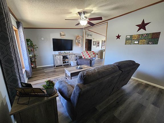 This home is situated on 1 acre and is just outside of town. It features newer siding and all-new flooring throughout. The kitchen is equipped with newer appliances, which will be included in the sale. Additionally, there is a new covered front deck. The property also includes an oversized two-car attached garage and a one-car detached garage.