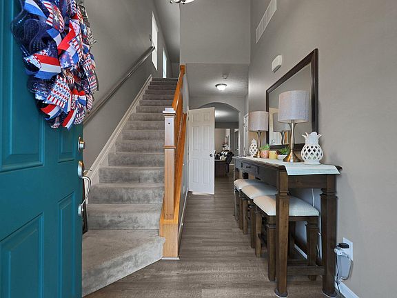 Welcome to this charming, move-in ready home in the desirable Waggoner Trace community! Set up as a smart home, this 3-bedroom, 2.5-bath gem offers 1,851 square feet of thoughtfully updated living space—blending comfort, style, and convenience. Every bathroom features heated toilet seats for added luxury. The main level boasts an open floor plan with a spacious great room and cozy gas log fireplace, a dining area, and a kitchen outfitted with updated appliances. You'll appreciate the convenience of a first-floor laundry room and a generous owner's suite with a full bath. Upstairs, a large loft offers flexible space for a home office, playroom, or second living area, along with two additional bedrooms and a full bath. Enjoy outdoor living on the covered front porch or the private, fenced-in back patio with direct access to the attached two-car garage. The low-maintenance lifestyle is complete with HOA-covered lawn care and snow removal. Ideally located near shopping, dining, parks, and more—with 100 acres of protected land behind the home that will never be developed. Don't miss your chance to call this beautiful home yours!