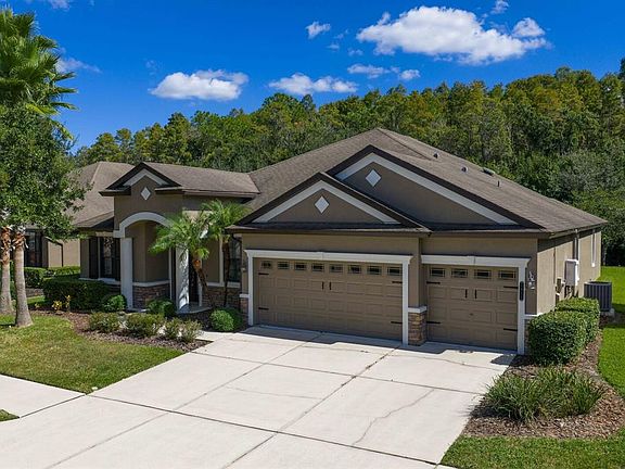 One or more photo(s) has been virtually staged. Experience the best of New Tampa living in Grand Hampton, a premier guard gated community known for its elegance and resort style amenities. This impressive 4 bedroom 4 bath residence spans over 3,000 square feet on a picturesque quarter acre conservation lot and is attractively offered to allow the next owner the opportunity to update finishes and personalize the home to their own style and décor.** From the moment you enter, you’ll be greeted by elegant architectural details, crown molding, and an abundance of natural light that enhances the home’s open and welcoming layout. The formal living area transitions effortlessly into the heart of the home, a stunning chef’s kitchen showcasing solid wood cabinetry, granite countertops, stainless steel appliances, recessed lighting, and a charming built in breakfast nook with bench seating. A private guest suite and full bath are conveniently located near the entry, while two additional secondary bedrooms provide ample comfort and flexibility, one featuring its own en suite bath and walk in closet. The primary suite is thoughtfully positioned at the rear of the home, overlooking the peaceful conservation area. Here, tray ceilings, a spa inspired bathroom with dual vanities, soaking tub, walk in shower, and generous walk in closet create a true retreat. Upstairs, a spacious loft with its own closet offers flexibility for a home theater, gym, office, or even a fifth bedroom if desired. Outside, French doors lead to a screened in lanai finished with porcelain wood look tile, perfect for relaxing or entertaining while enjoying the tranquil wooded backdrop and complete privacy with no rear neighbors. Recent updates include a new AC unit in 2021 and a tankless water heater in 2022. The oversized 3 car garage provides plenty of room for storage or hobbies. Residents of Grand Hampton enjoy resort style living with world class amenities including a 24 hour manned gate, clubhouse, fitness center, playgrounds, multiple heated pools with a water slide, spa, tennis and basketball courts, and scenic lake access. This home presents an exceptional opportunity to create your dream space in one of Tampa’s most sought after master planned communities. Ideally located near I 75, I 275, AdventHealth, The Shops at Wiregrass, and Tampa Premium Outlets, and just a short drive to the Gulf beaches, the vibrant lifestyle of downtown Tampa, and top rated New Tampa schools, this is Florida living at its finest. Welcome Home!
